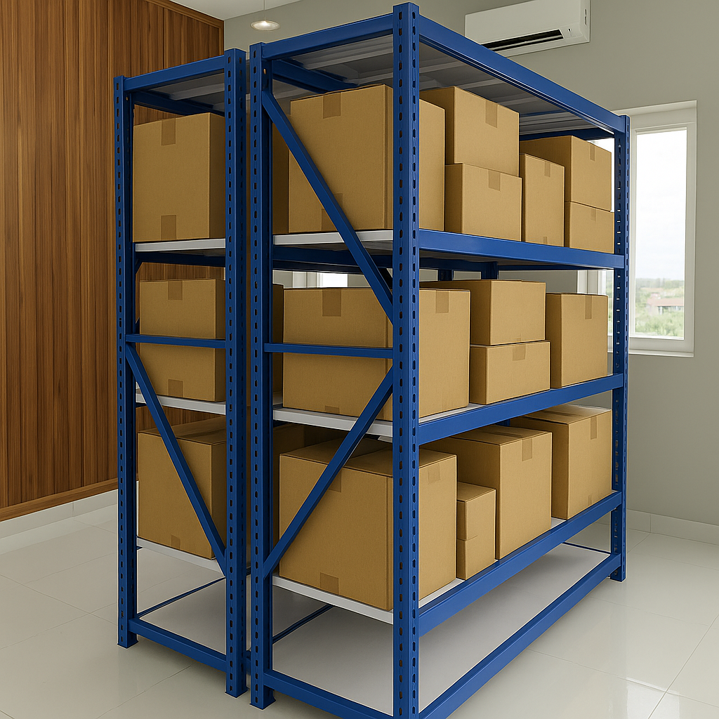 Rak light duty sering dipakai untuk toko online, kantor, atau usaha rumahan.
