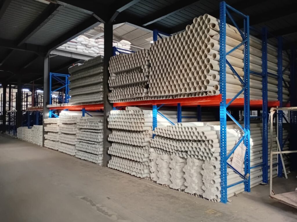 Beberapa pabrik elektronik memiliki kebutuhan penyimpanan khusus untuk produk yang lebih besar seperti mesin industri, panel listrik, atau komponen berat. Heavy duty racking merupakan pilihan yang tepat untuk kebutuhan ini. Dengan struktur yang sangat kuat, rak mampu menahan beban tinggi tanpa risiko melengkung atau bergeser. Sistem ini memberikan stabilitas maksimal sehingga sangat cocok untuk penyimpanan komponen yang bernilai tinggi.